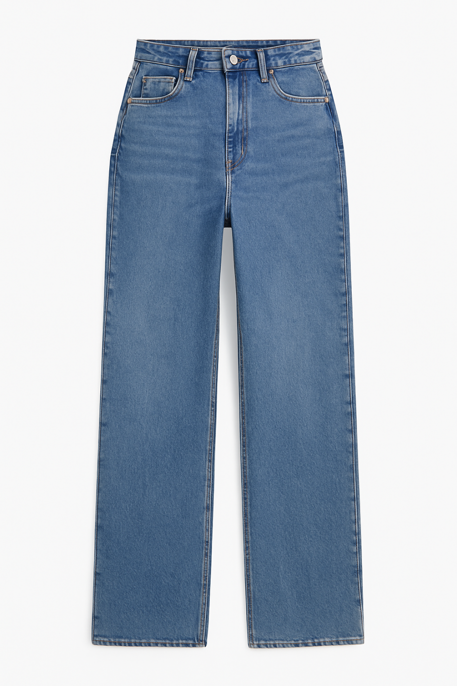Šie aukšto liemens, tiesaus kirpimo džinsai iš šviesaus mėlyno džinso yra nepakeičiamas drabužis kasdienai bei stilingiems deriniams. Dėl minimalistinio dizaino juos lengvai priderinsite prie megztinio, marškinių, švarko ar paltuko – idealiai tinka tiek miesto pasivaikščiojimams, tiek darbui ar laisvalaikiui.