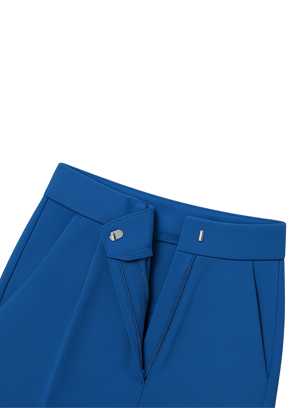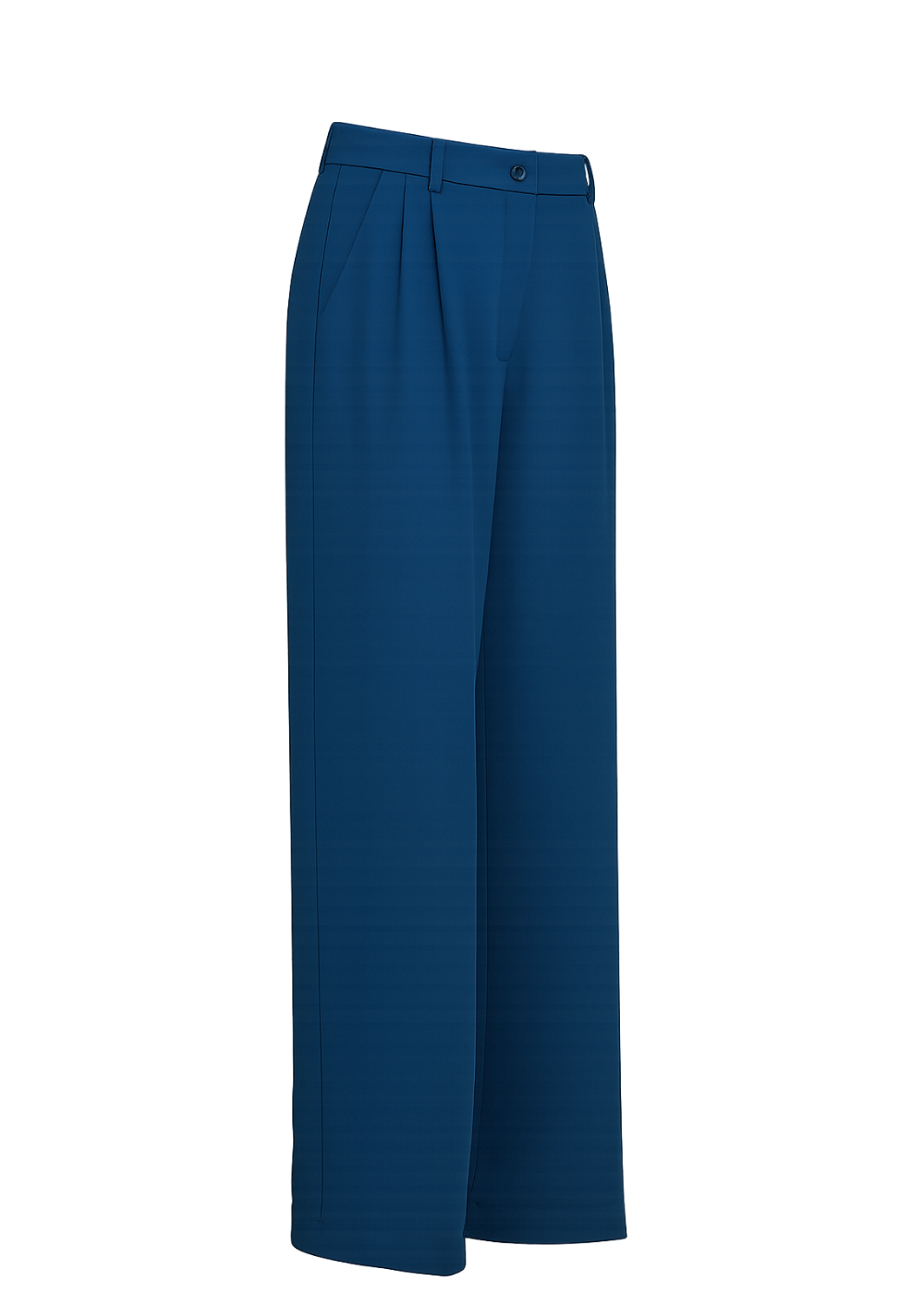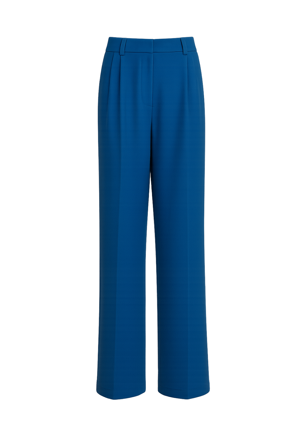Moteriškos mėlynos laisvalaikio kelnės – stilingas ir patogus pasirinkimas kiekvienai dienai! Klasikinis aukštas liemuo ir tiesaus silueto kirpimas sukuria subtilų, bet kartu ir šiuolaikišką įvaizdį, tinkantį tiek darbui, tiek kasdieniam laisvalaikiui. Kelnės pagamintos iš aukštos kokybės audinių mišinio: 100% poliesteris.