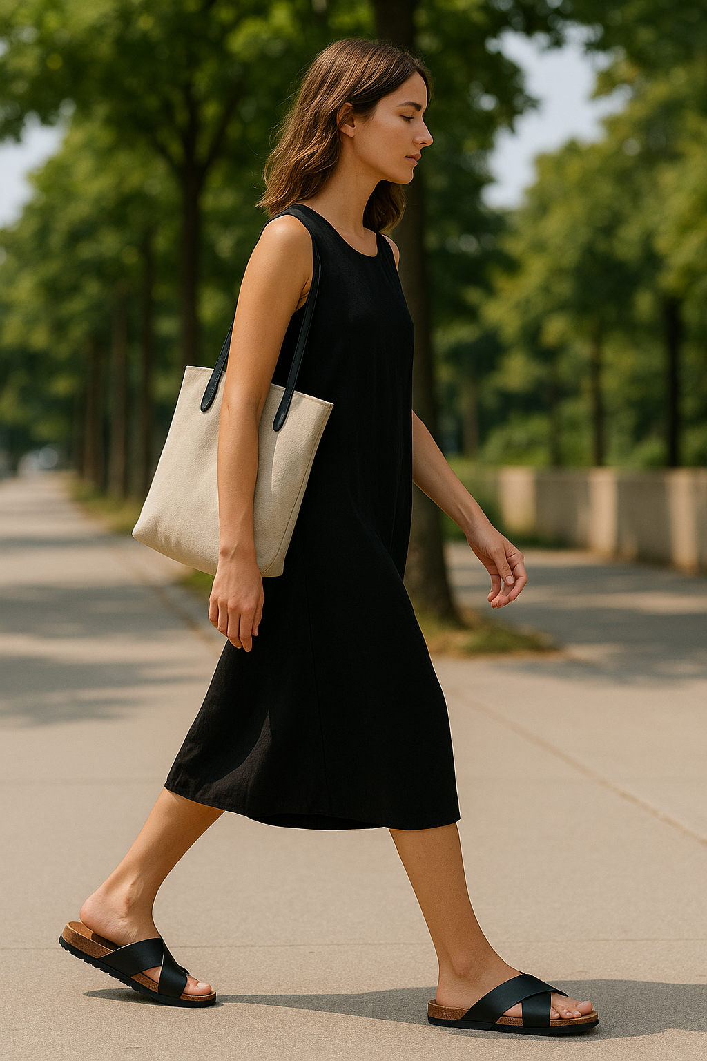 Vasarinės šlepetės – elegantiškas ir praktiškas pasirinkimas šiltajam sezonui! Žemės atspalvių dizainas ir minimalistinės kryžiuotos juostelės suteikia modernumo, todėl šios šlepetės puikiai tinka tiek miesto stiliui, tiek poilsio akimirkoms gamtoje ar paplūdimyje.