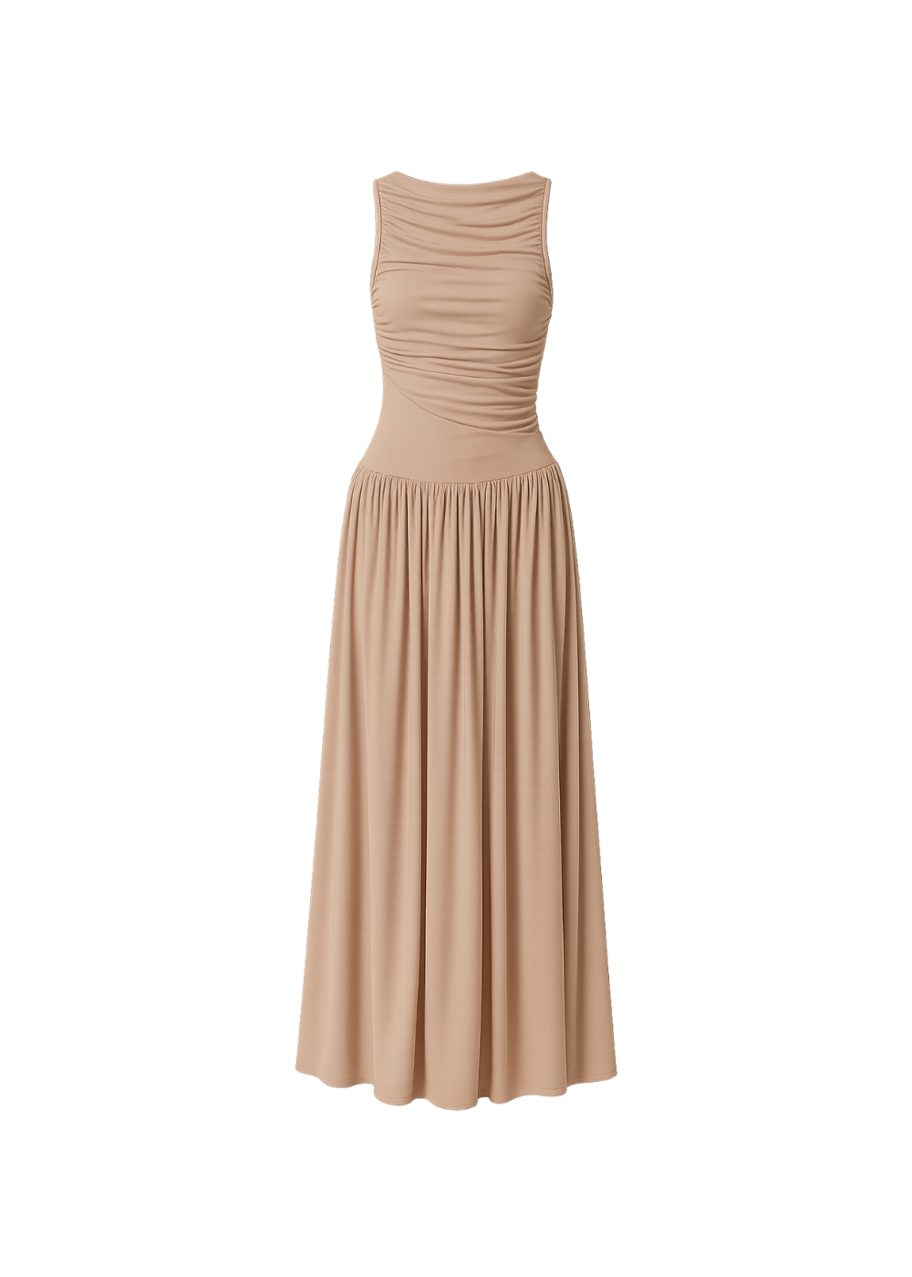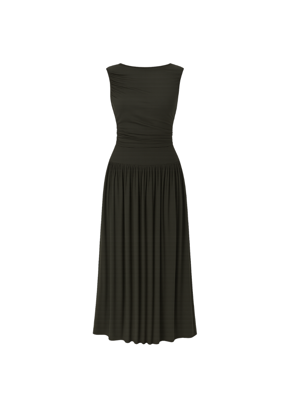 Suknelė be rankovių – puikiai tinka šiltoms vasaros dienoms ar elegantiškoms vakarienėms po atviru dangumi.