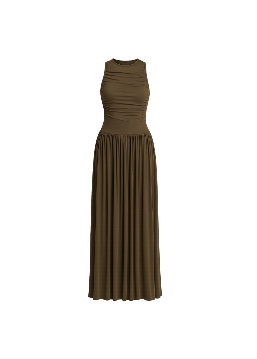 Moteriška suknelė be rankovių – elegantiškas ir universalus pasirinkimas vasaros sezonui! Subtiliai paryškintas liemuo ir ilgas siluetas išryškina figūrą, o klasikinis dizainas suteikia rafinuoto moteriškumo pojūtį tiek atostogoms, tiek vakariniams pasivaikščiojimams.