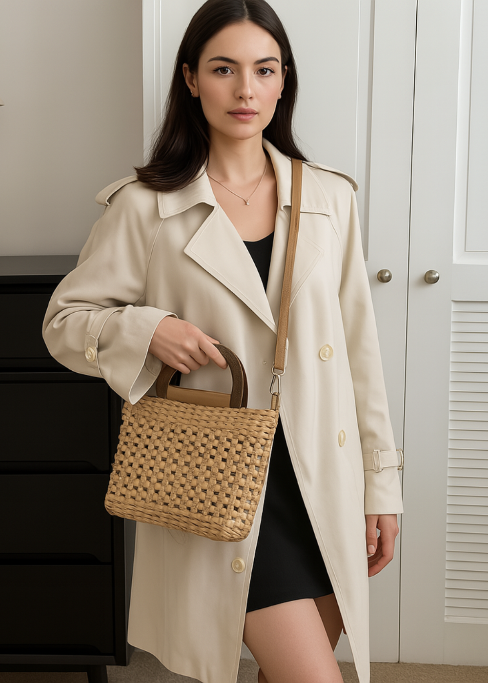 Bohemiško stiliaus šiaudinė rankinė – žavingas ir praktiškas aksesuaras vasaros sezonui! Lengvos struktūros pintas dizainas, natūralios spalvos atspalviai ir kompaktiškas dydis sukuria nepriekaištingą stiliaus akcentą tiek miestui, tiek poilsiui gamtoje.
