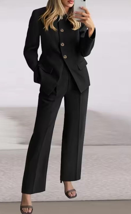 Stilingas moteriškas dviejų dalių kostiumėlis – elegantiškas pasirinkimas tiek darbui, tiek išskirtiniams vakariniams deriniams. Komplektą sudaro: