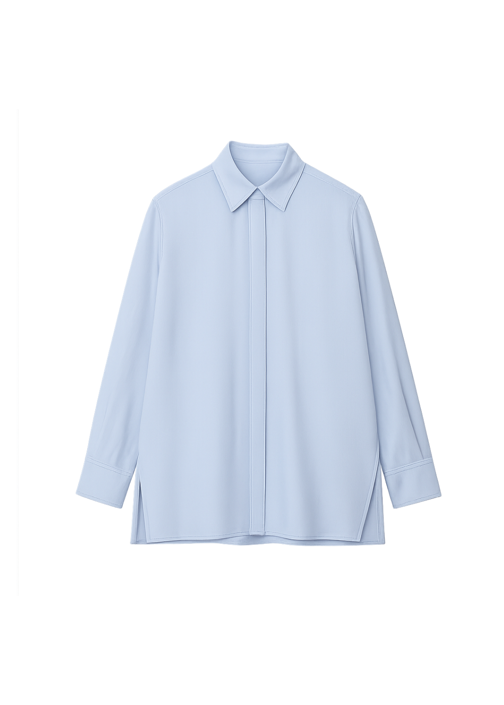 Moteriška klasikinio stiliaus palaidinė/marškiniai – stilingas ir lengvas drabužis šiltajam sezonui! Šviesiai mėlyna spalva, ilgos rankovės ir minimalistinis dizainas puikiai tiks tiek biurui, tiek laisvalaikiui mieste.