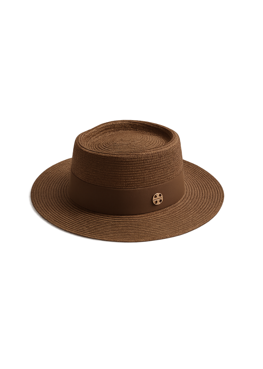Moteriška vasarinė skrybėlė – stilingas ir funkcionalus aksesuaras saulėtoms dienoms! Šiuolaikiškas dizainas, žemiškas rudos spalvos atspalvis ir solidi forma suteikia elegancijos tiek paplūdimyje, tiek miesto pasivaikščiojimų metu.