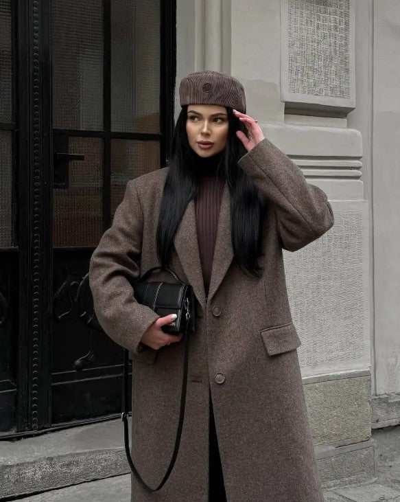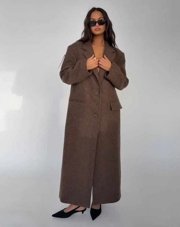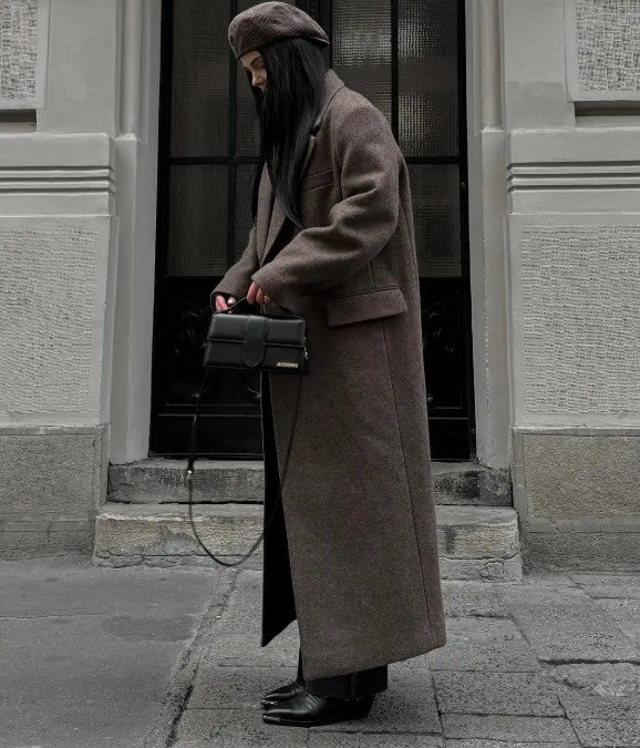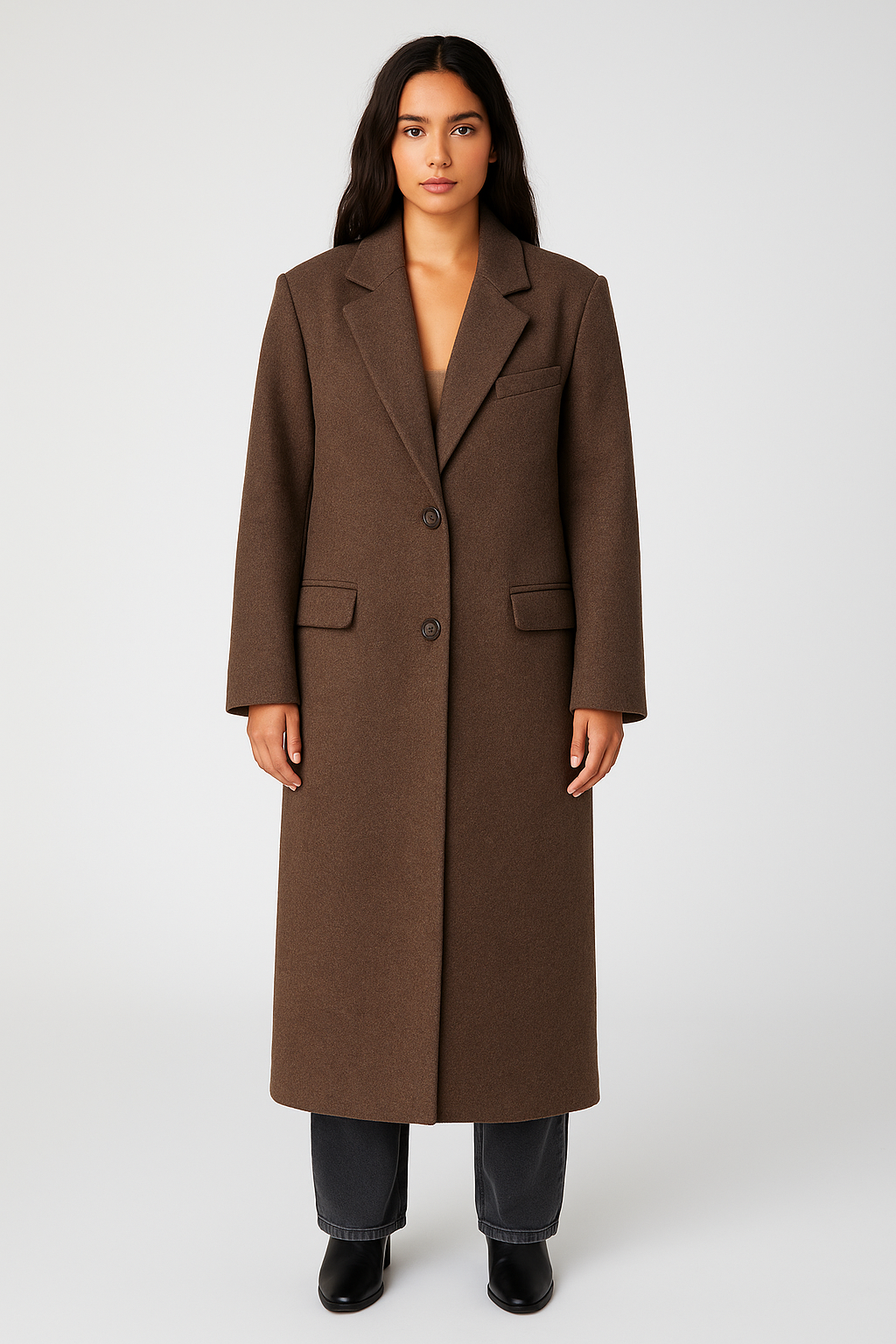 Šis elegantiškas ilgas paltas – tai tobulas derinys tarp klasikos ir modernumo.