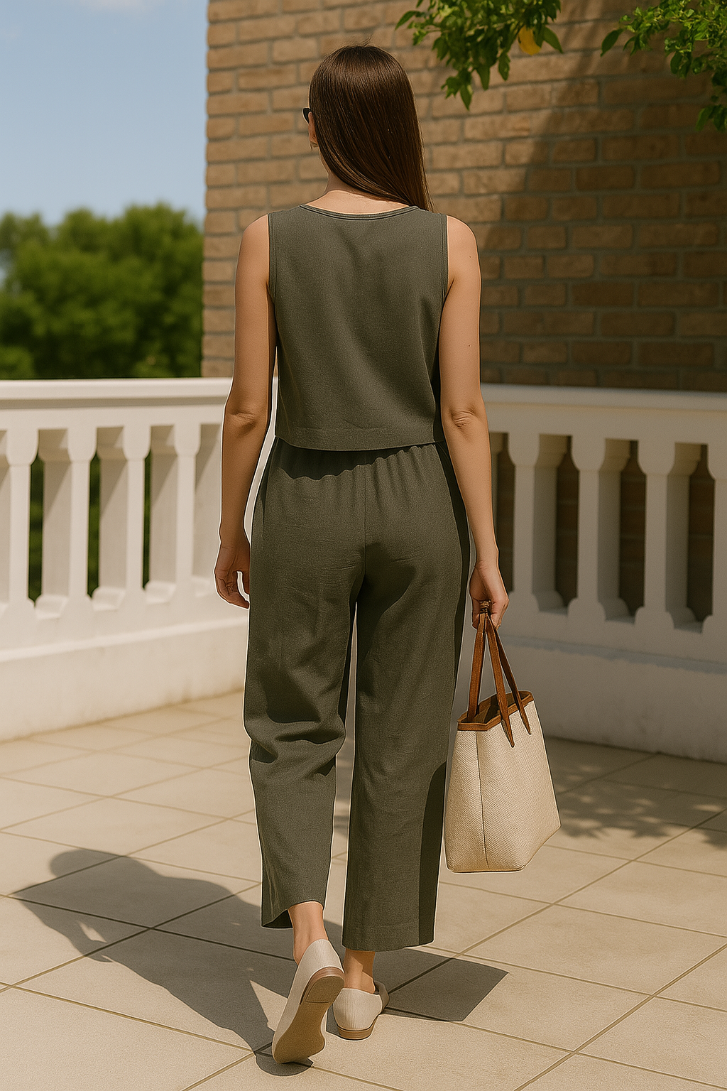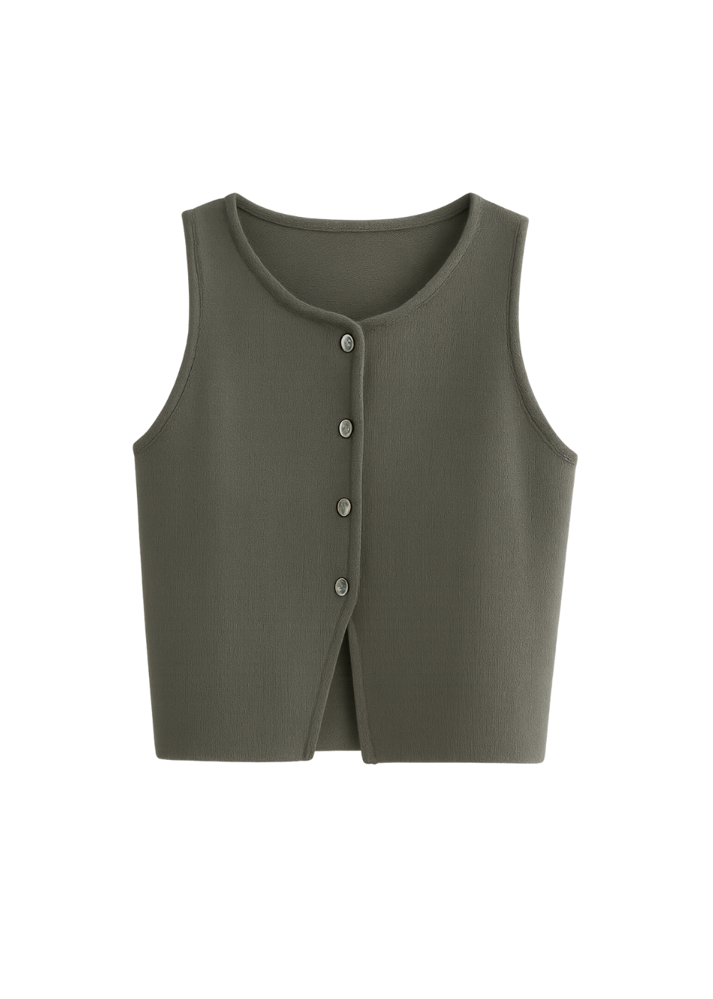 Moteriška megzta palaidinė – stilingas ir patogus drabužis šiltiems sezonams! Paprasto, bet elegantiško dizaino palaidinė su V formos iškirpte ir sagomis suteikia subtilų akcentą tiek kasdieniam, tiek biuro stiliui.