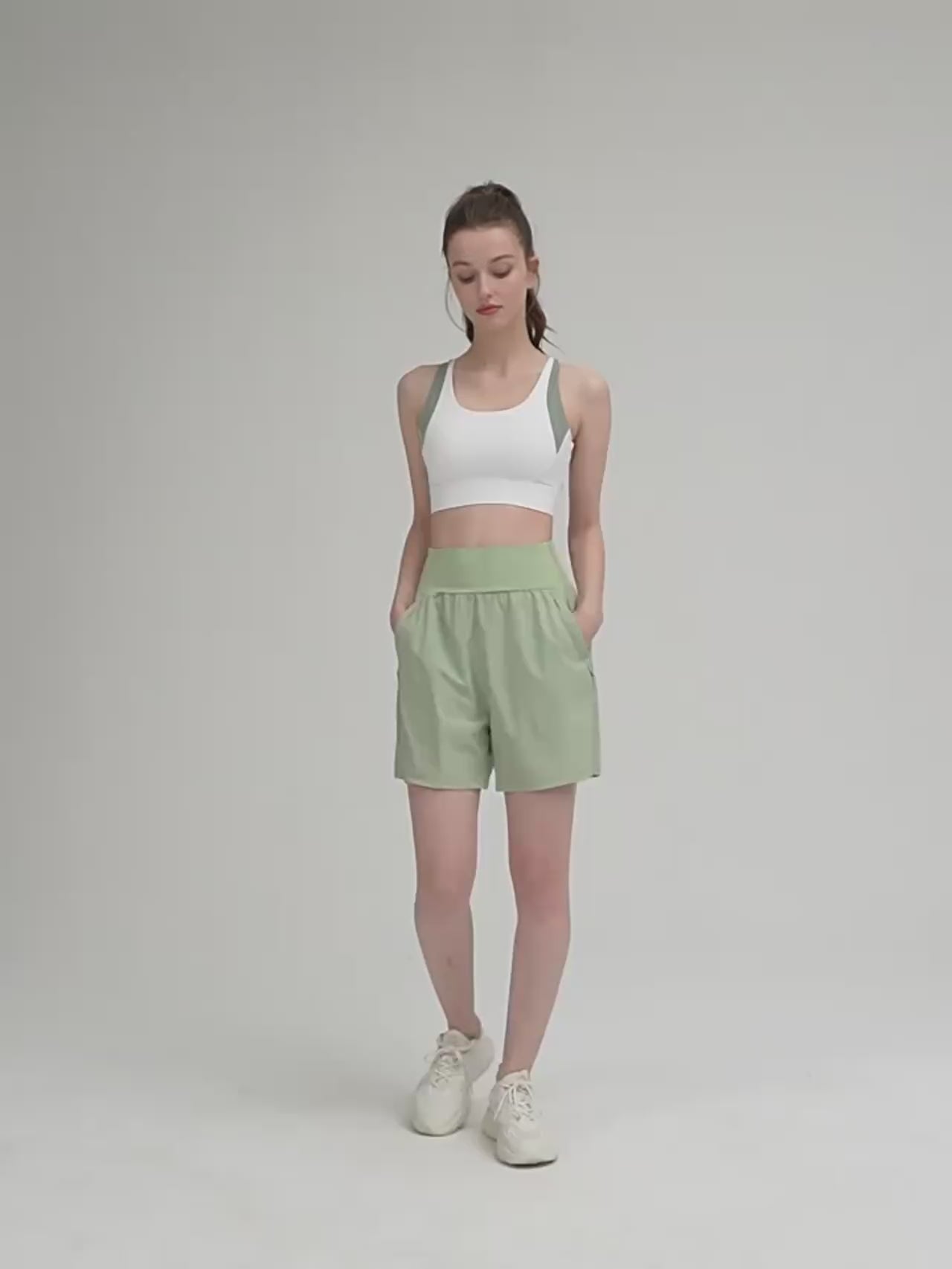 Moteriški šortai su kišenėmis – patogus ir funkcionalus pasirinkimas aktyviam gyvenimo būdui! Gaivus minimalistinis dizainas su aukštu juosmeniu ir plati juosta pabrėžia liemenį bei užtikrina stabilų prigludimą.