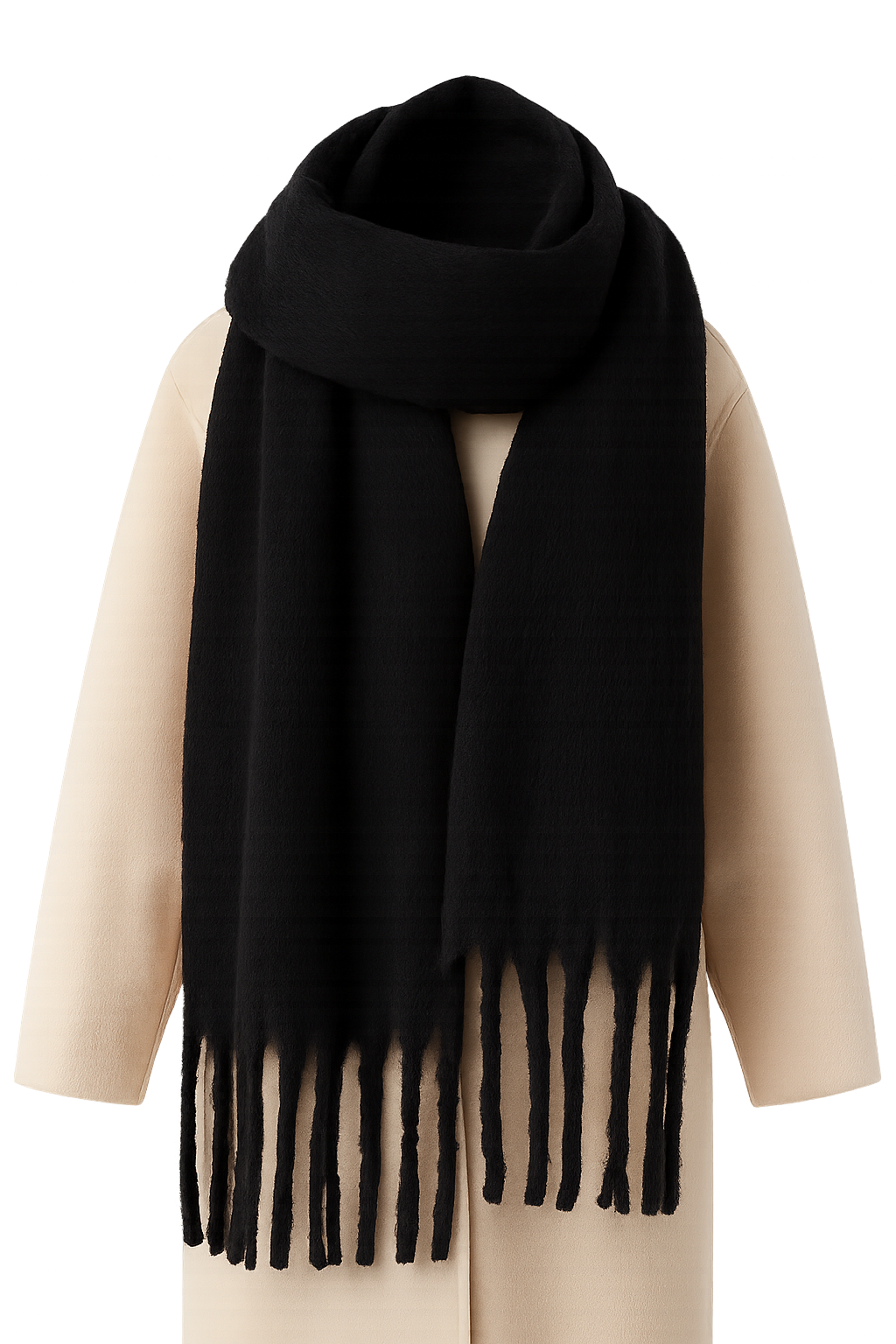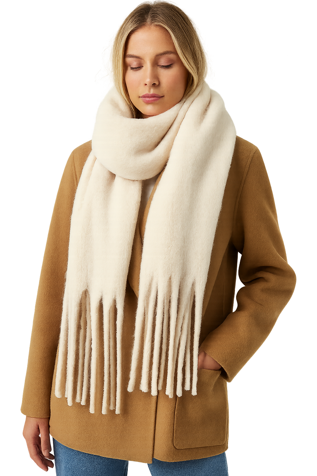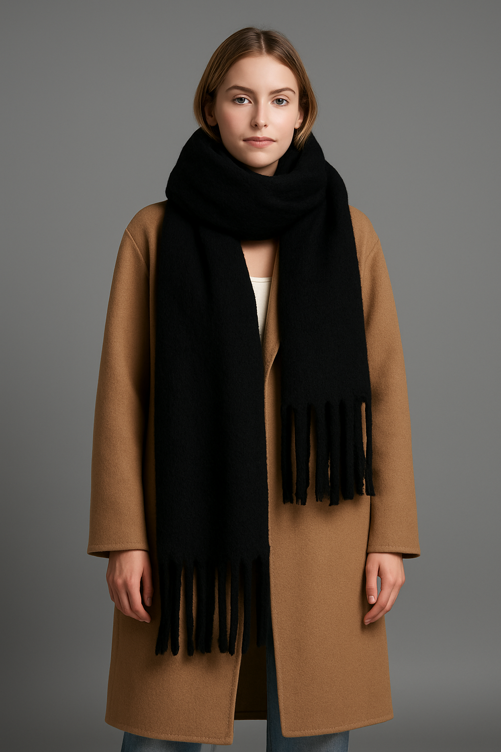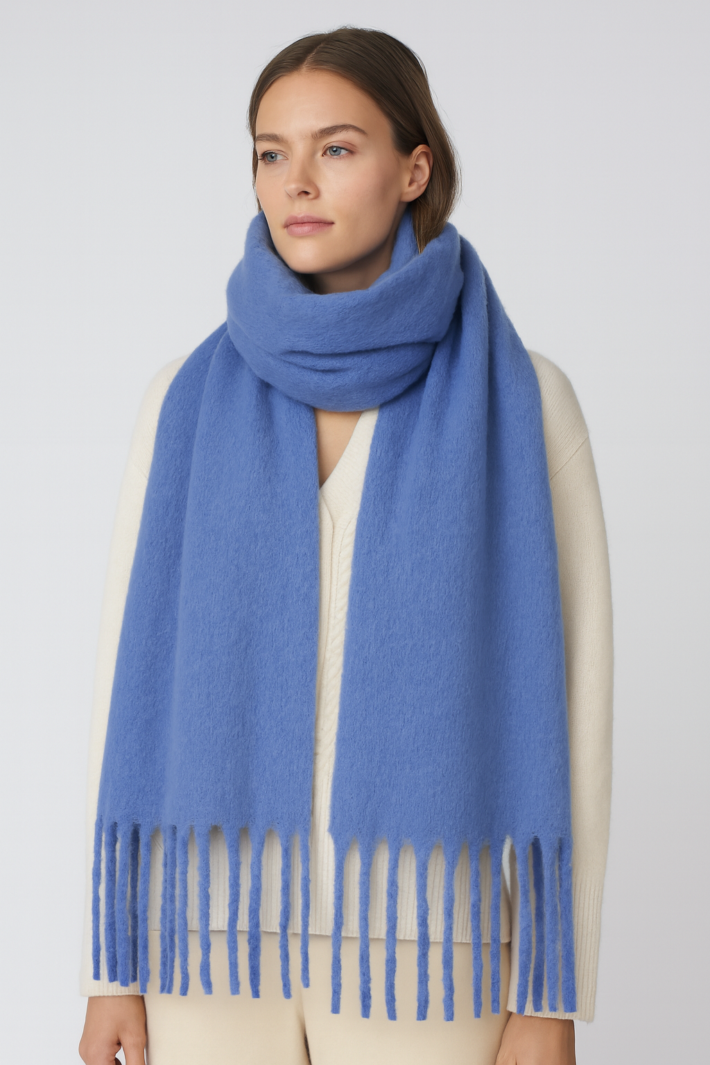 Dideli kutai suteikia elegancijos ir išbaigtumo pojūtį, o jo ilgis leidžia jį dėvėti įvairiais būdais - apvynioti aplink kaklą, užsimesti ant pečių ar derinti prie paltų ir striukių.